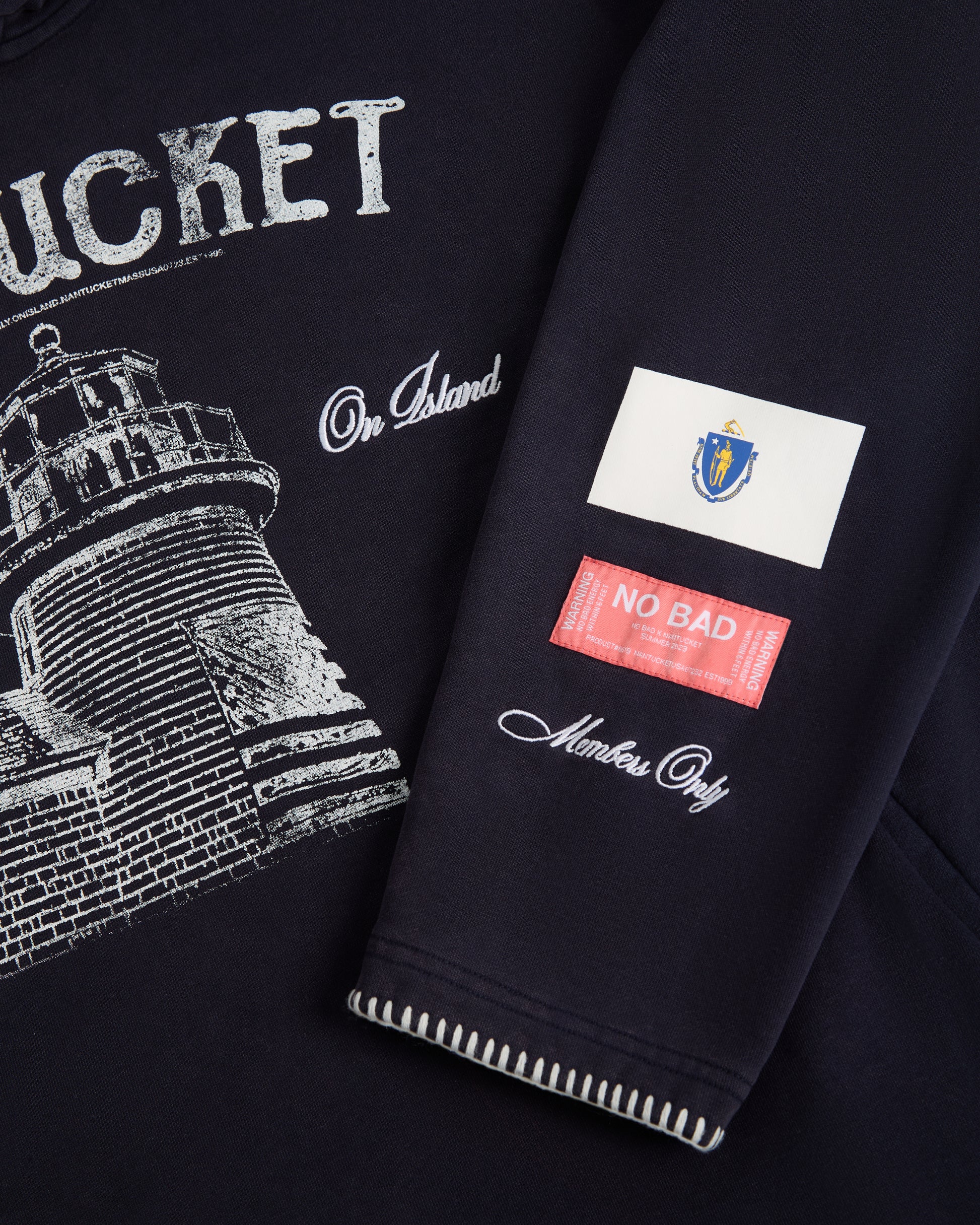 • Massachusetts state flag screen-printed on sleeve — a nod to where this story began